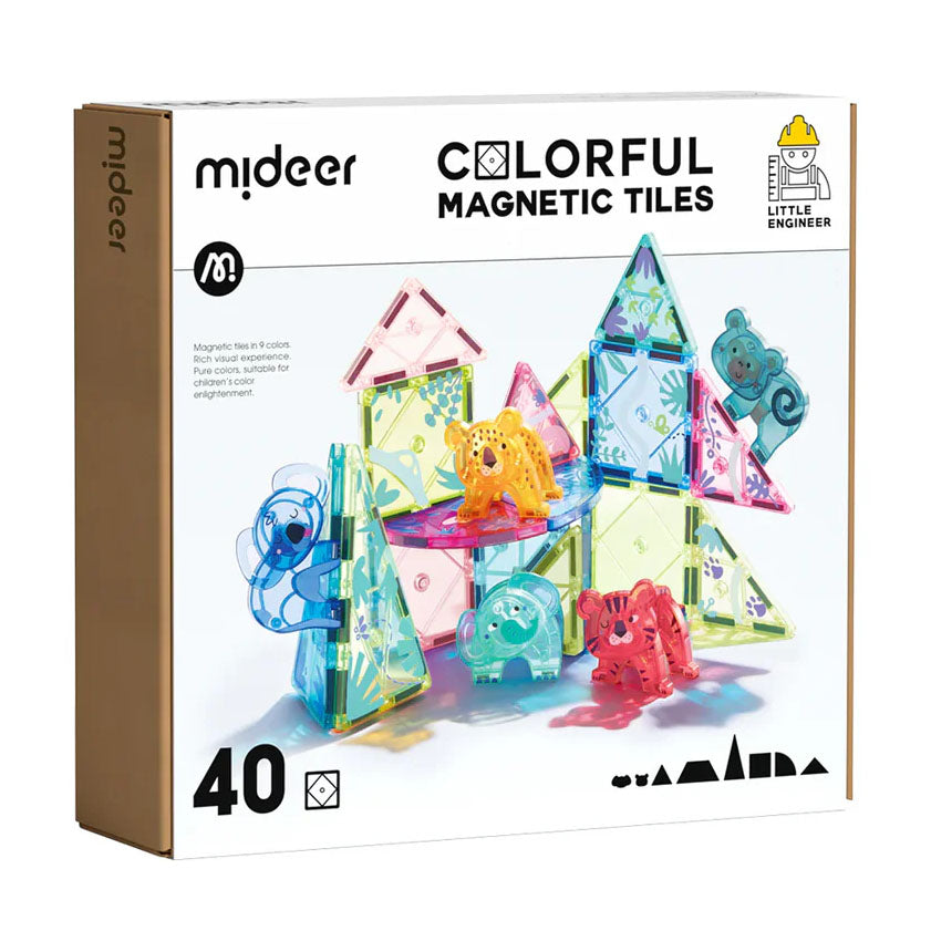 Los Azulejos Magnéticos con Animales de Mideer combinan construcción tridimensional y juego simbólico en un solo set. Gracias a sus piezas magnéticas y figuras de animales integradas, los niños pueden crear escenarios, hábitats y estructuras mientras desarrollan su imaginación y habilidades espaciales.