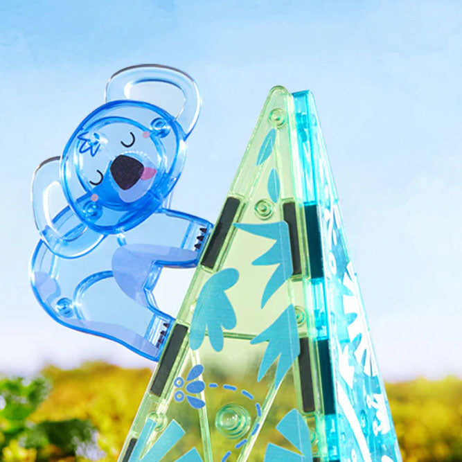 Este set aporta un valor añadido frente a los bloques magnéticos tradicionales, ya que incorpora elementos temáticos de animales, permitiendo ampliar el juego hacia la narración, la creatividad y el aprendizaje del entorno natural.