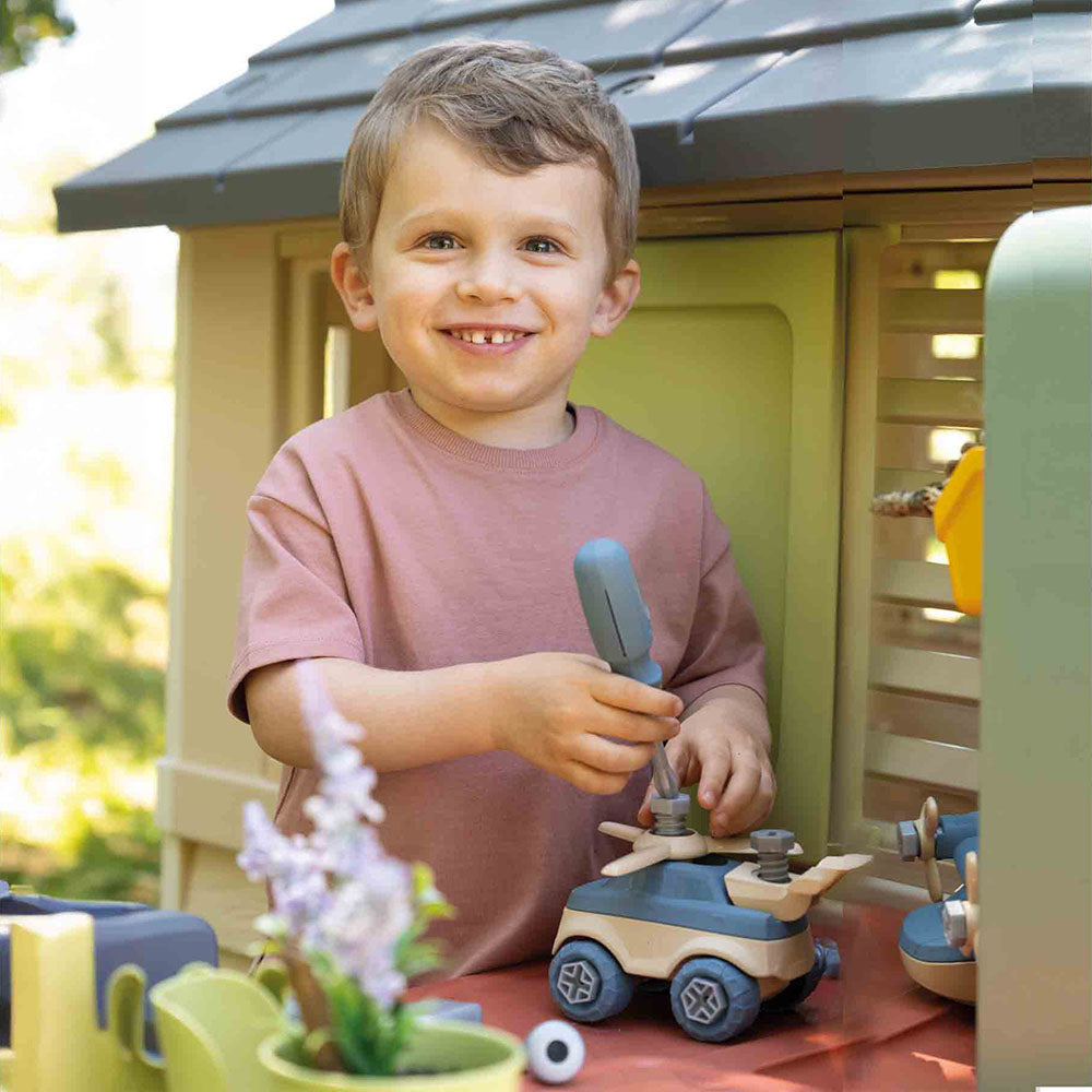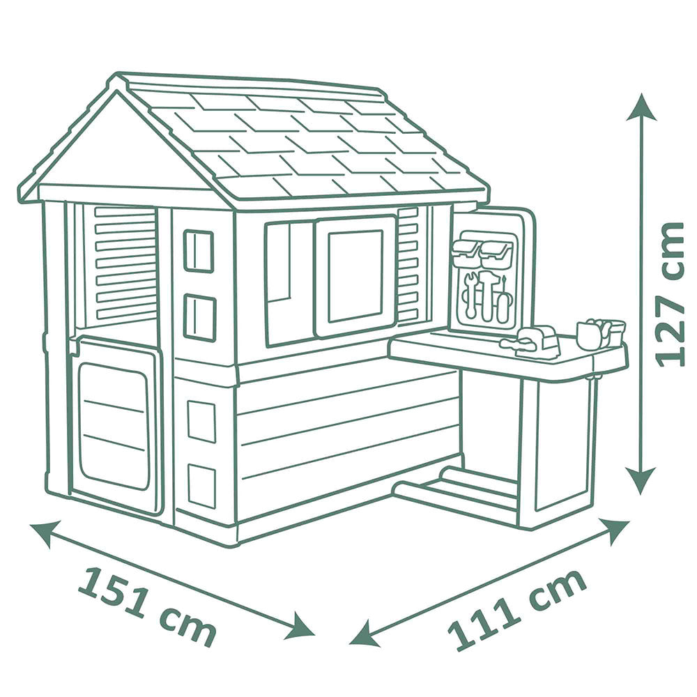 La Casita Nature con Banco de Trabajo de Smoby es una casa de jardín infantil diseñada para fomentar el juego creativo y las actividades manuales al aire libre. Combina una casita clásica con un taller de bricolaje integrado, permitiendo a los niños imaginar, construir y jugar durante horas.