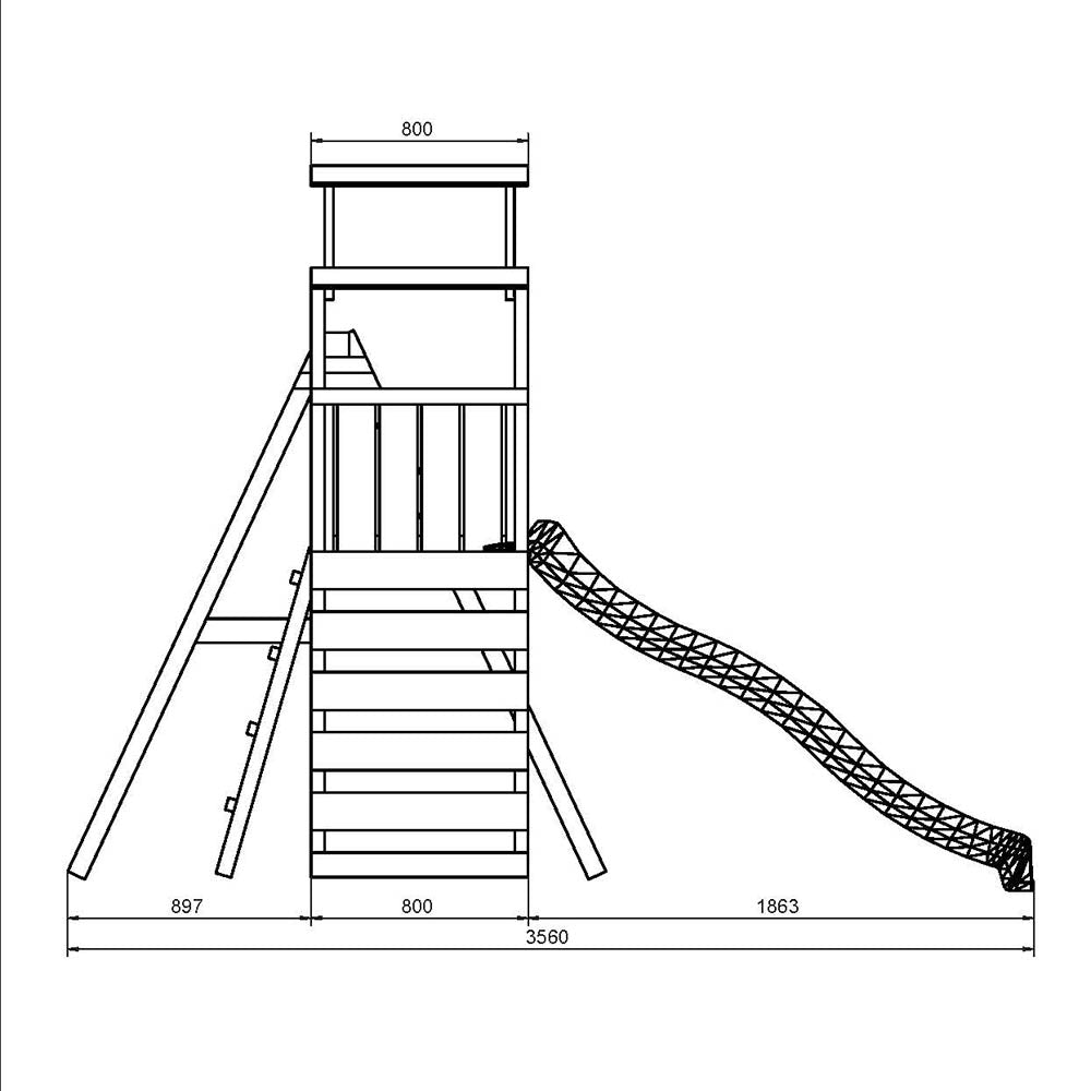 Fabricado en madera tratada a presión, este parque infantil está preparado para resistir las condiciones climáticas exteriores y el uso intensivo. El tobogán ondulado permite además conectar una manguera para convertirlo en tobogán de agua durante los meses de verano, multiplicando las posibilidades de juego.