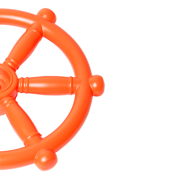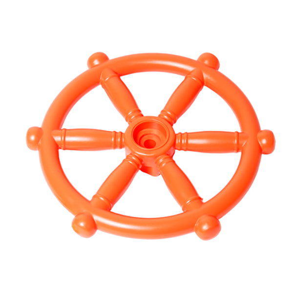 Timón de color naranja, bastante bonito. Lo montaremos junto a un juego de madera que ya tenímaos en el jardín.