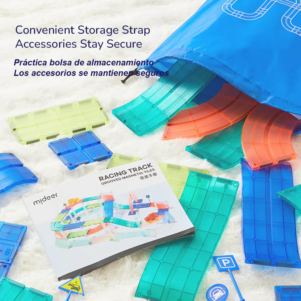 Los Bloques Magnéticos con Coches – Pista de Carreras Mideer MD6395 (115 piezas) ofrecen una experiencia completa que une construcción magnética y emoción sobre ruedas. Ideal para niños creativos y activos que disfrutan diseñando sus propios circuitos y probando sus vehículos en estructuras únicas.