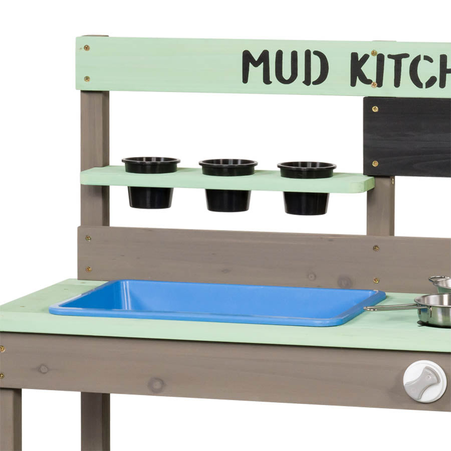 Cocina de barro infantil para juego sensorial al aire libre