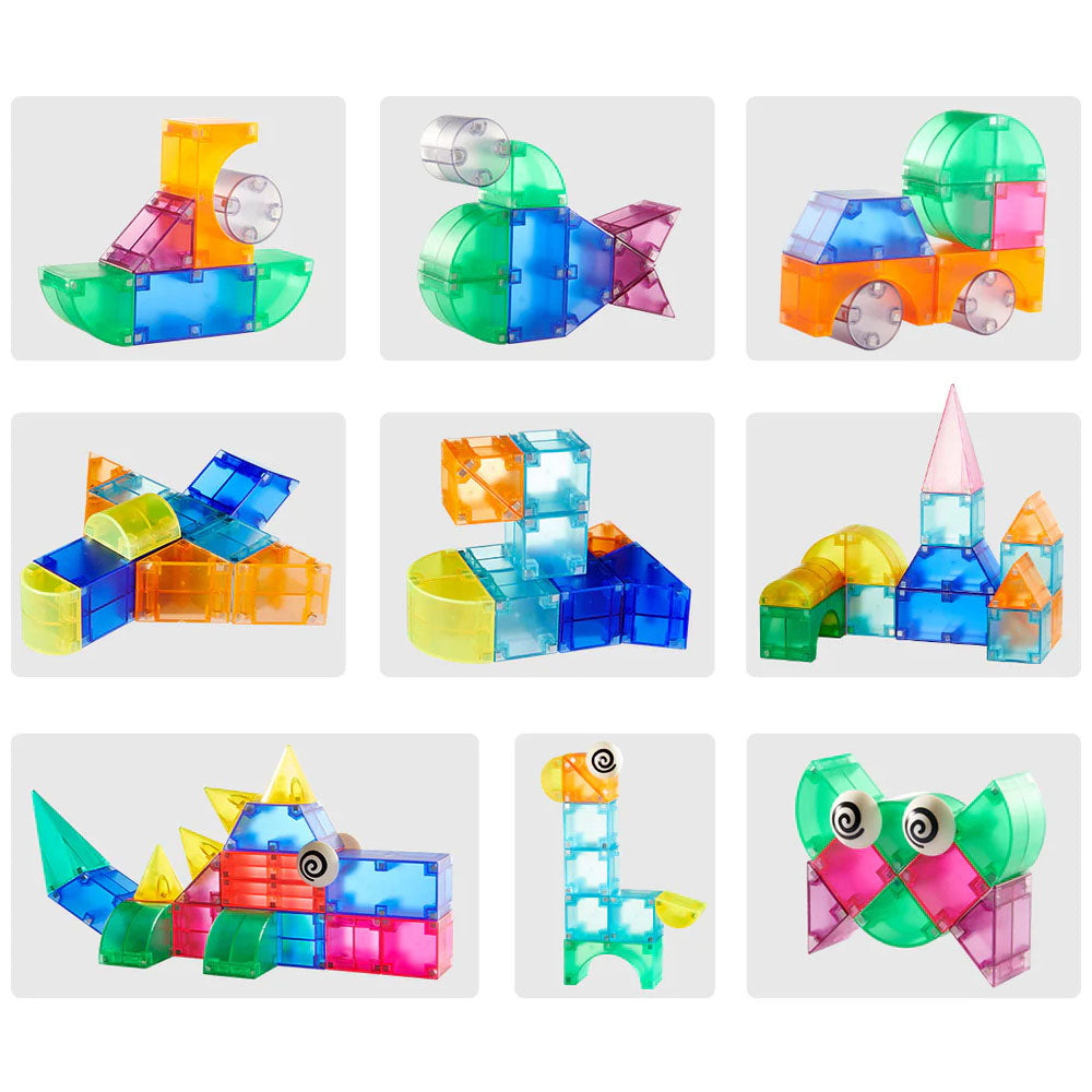 Este set está diseñado para estimular la creatividad infantil mientras introduce conceptos clave de geometría y equilibrio. Las piezas incorporan imanes internos potentes y seguros, que facilitan un ensamblaje firme y estable, permitiendo a los niños experimentar libremente sin frustraciones.