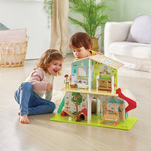 - Efectos de Sonido Interactivos: La casa de muñecas contiene una gran variedad de efectos de sonido que garantizan horas y horas de diversión. Los efectos se activan cuando una figura del juego se coloca sobre las luces LED de cada habitación.