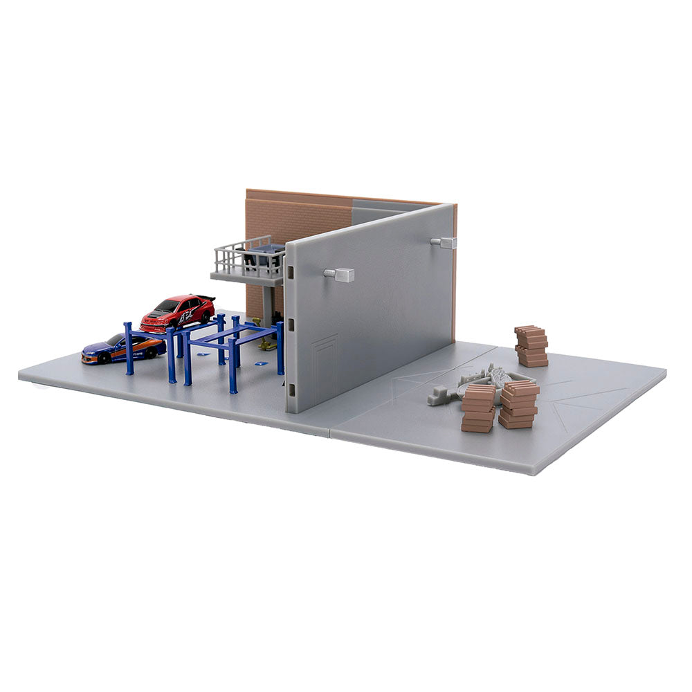 • Incluye: Garaje diorama + 2 vehículos metálicos (aproximadamente 4 cm cada uno) con ruedas libres y neumáticos de goma.
