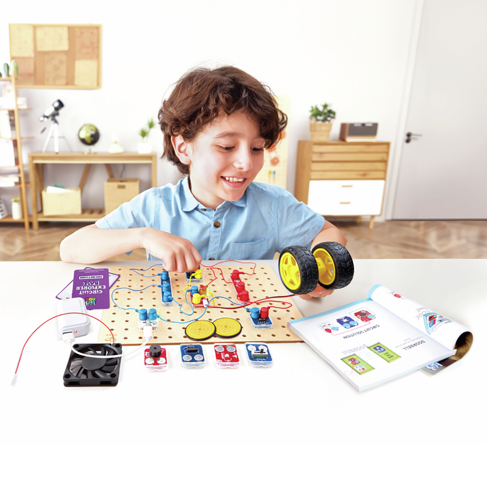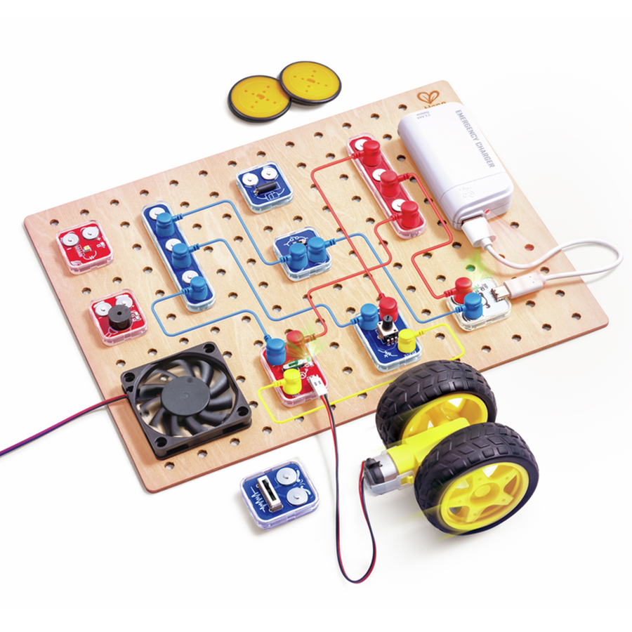 El Circuito Explorer Básico de Hape es un juego educativo de introducción a la electricidad y los circuitos diseñado para fomentar el aprendizaje práctico y visual. Con piezas magnéticas fáciles de conectar y componentes seguros, los niños pueden montar circuitos básicos sin necesidad de herramientas ni conocimientos previos. Es ideal para introducir conceptos técnicos de forma divertida y segura.
