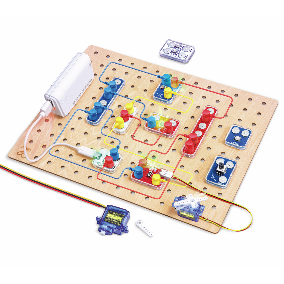El Circuito Explorer Boost de Hape es un kit educativo avanzado de electrónica diseñado para que los niños y jóvenes exploren y comprendan conceptos eléctricos más allá de lo básico. Ofrece una variedad de componentes que permiten montar circuitos complejos, combinando piezas magnéticas y módulos electrónicos que facilitan el aprendizaje práctico de fenómenos como sensores, interruptores, motores y más de forma intuitiva y segura.