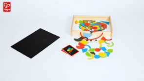 - Doble Cara: La tapa de la caja está recubierta con una capa magnética para que coloques y ordenes las formas en cualquiera de sus lados, uno pintado y otro en blanco.