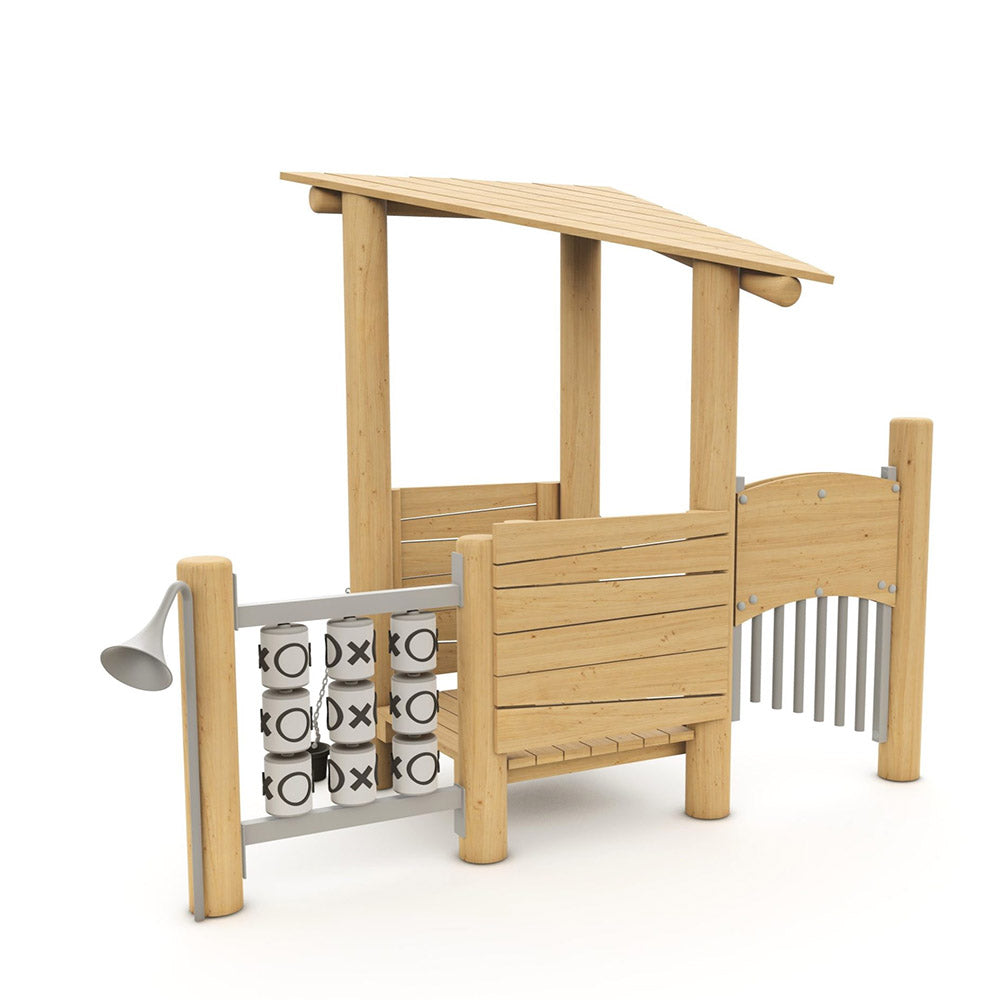 Esta torre sensorial ROBINIA está equipada con diferentes paneles interactivos que estimulan el juego creativo y el desarrollo sensorial de los niños, fomentando la exploración, la coordinación y la interacción social.