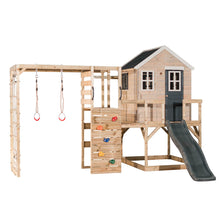 El Parque infantil para jardín My Lodge con tobogán y gimnasio es perfecto para que los niños disfruten del aire libre. Con un diseño elegante, y múltiples actividades integradas, ofrece un espacio propio donde jugar, relajarse o inventar aventuras. Este parque cuenta con una puerta completa, dos ventanas con persianas, una placa decorativa “MY HOUSE” , un suelo de madera resistente y un módulo de gimnasio completo exterior.