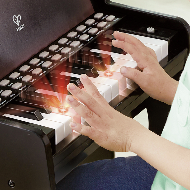 - Piano electrónico con 25 teclas luminosas: Las teclas que se iluminan sirven de guía para aprender a tocar al principio.